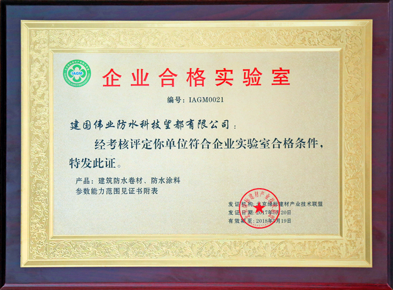 建國偉業(yè)、望都生產(chǎn)基地分別榮獲“企業(yè)合格實驗室”稱號。我們“富有激情、負(fù)有責(zé)任”誠心做一名擁有最基本態(tài)度的匠人,而恰恰是這種態(tài)度決定了“注重品質(zhì)、注重細(xì)節(jié)”的匠人情懷??偫碓趫蟾嬷刑岬健熬媲缶闭故玖藢Α肮そ尘瘛钡母叨雀爬?,體現(xiàn)了對各行各業(yè)的信心和希冀。建國偉業(yè)始終懷至誠于內(nèi),求大財于外,本著正道匠心的理念潛心打造良心企業(yè),演繹防水經(jīng)典,共創(chuàng)美好明天。
