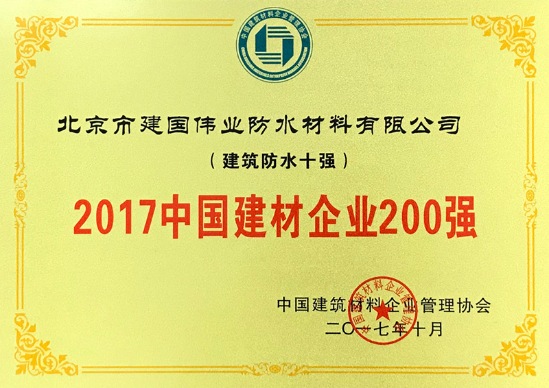 建國偉業(yè)榮獲“2017中國建材企業(yè)200強(qiáng)”稱號
